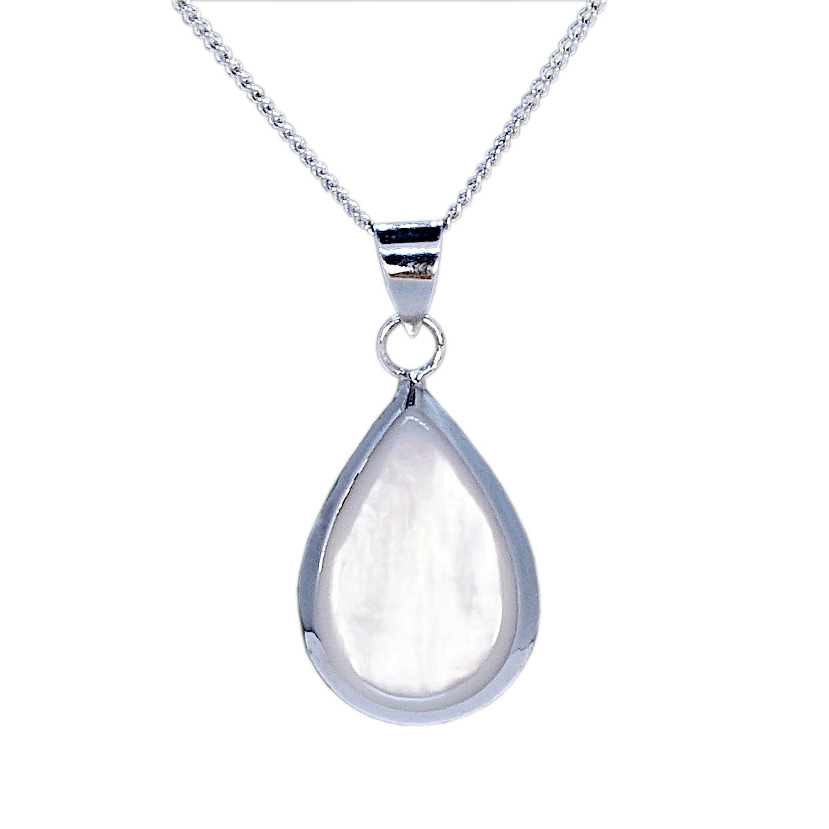 Irish Hallmarked Sterling Silver Mother of pearl tear shaped pendant and 16" curb chain