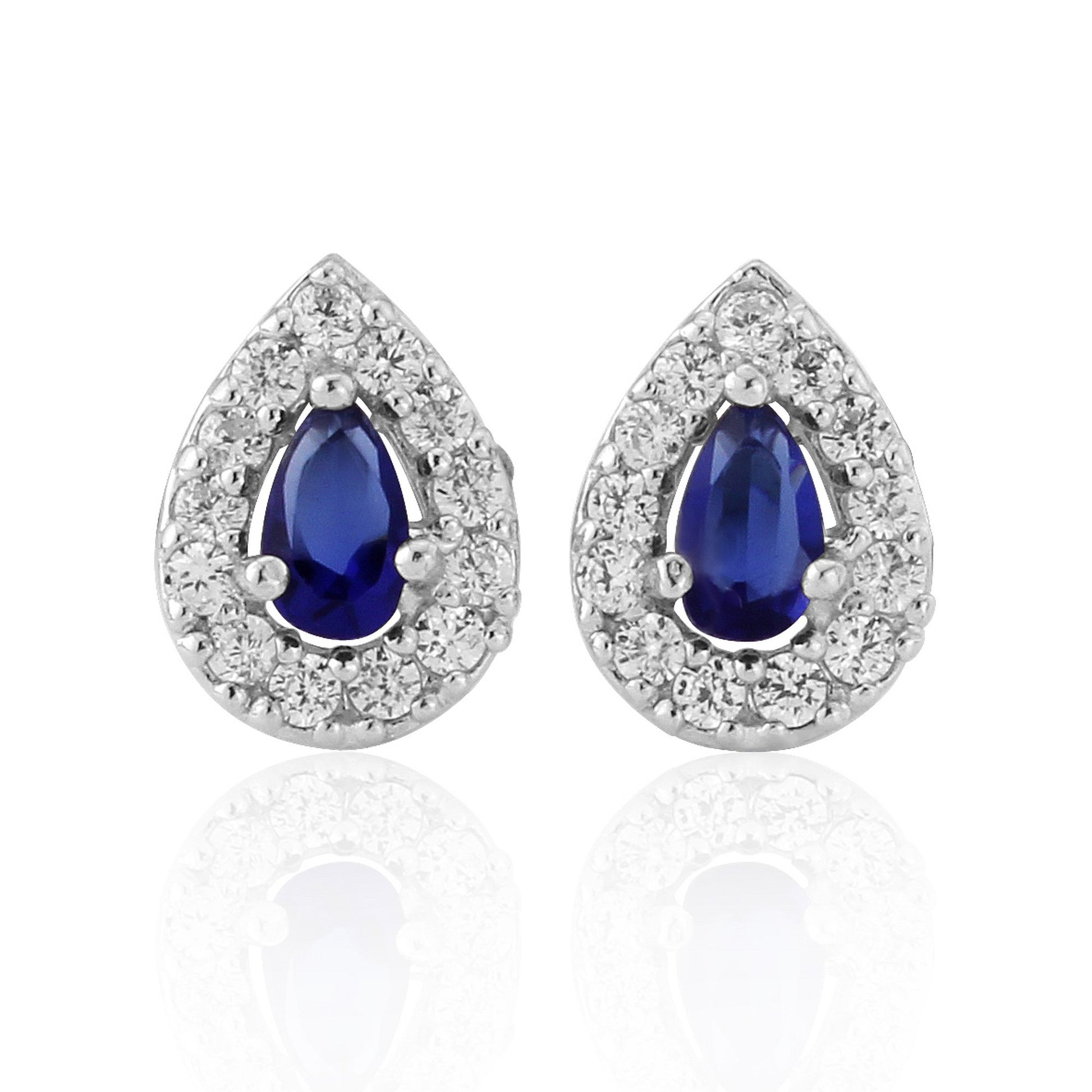 Navy and White CZ Tear Shaped Sterling Silver Stud Earrings