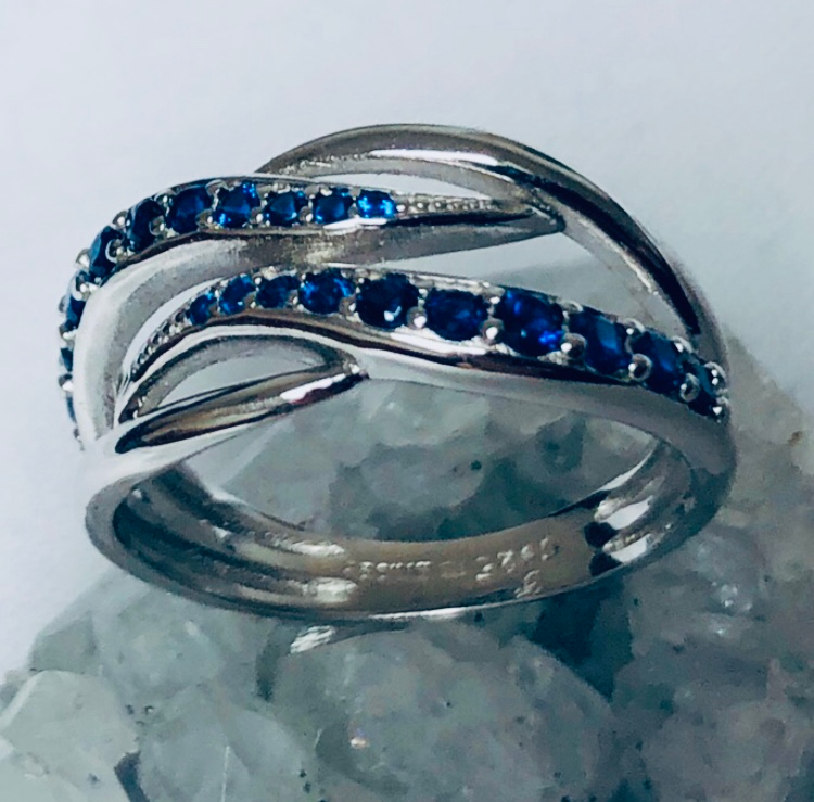 Navy Cubic Zirconia Double Wave Sterling Silver Ring