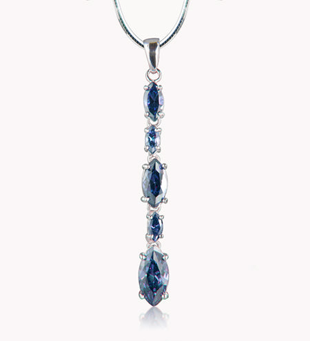 Navy Cubic Zirconia Long Silver Pendant and Silver Chain