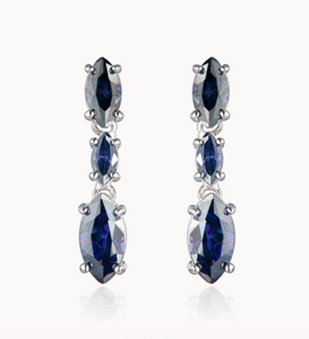 Navy Cubic Zirconia Sterling Silver Long Earrings