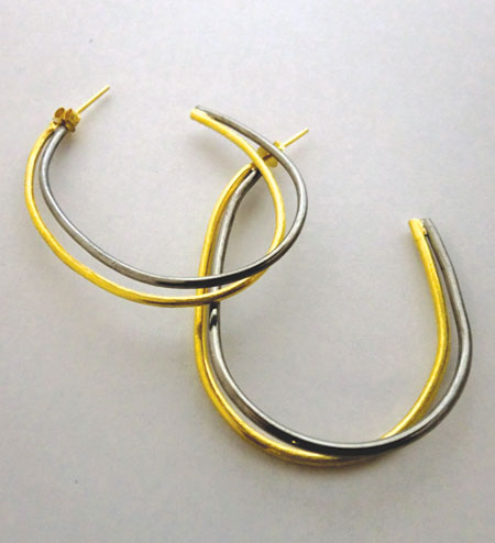 Oxidised and Gold Plated Sterling Silver Hoop Earrings
