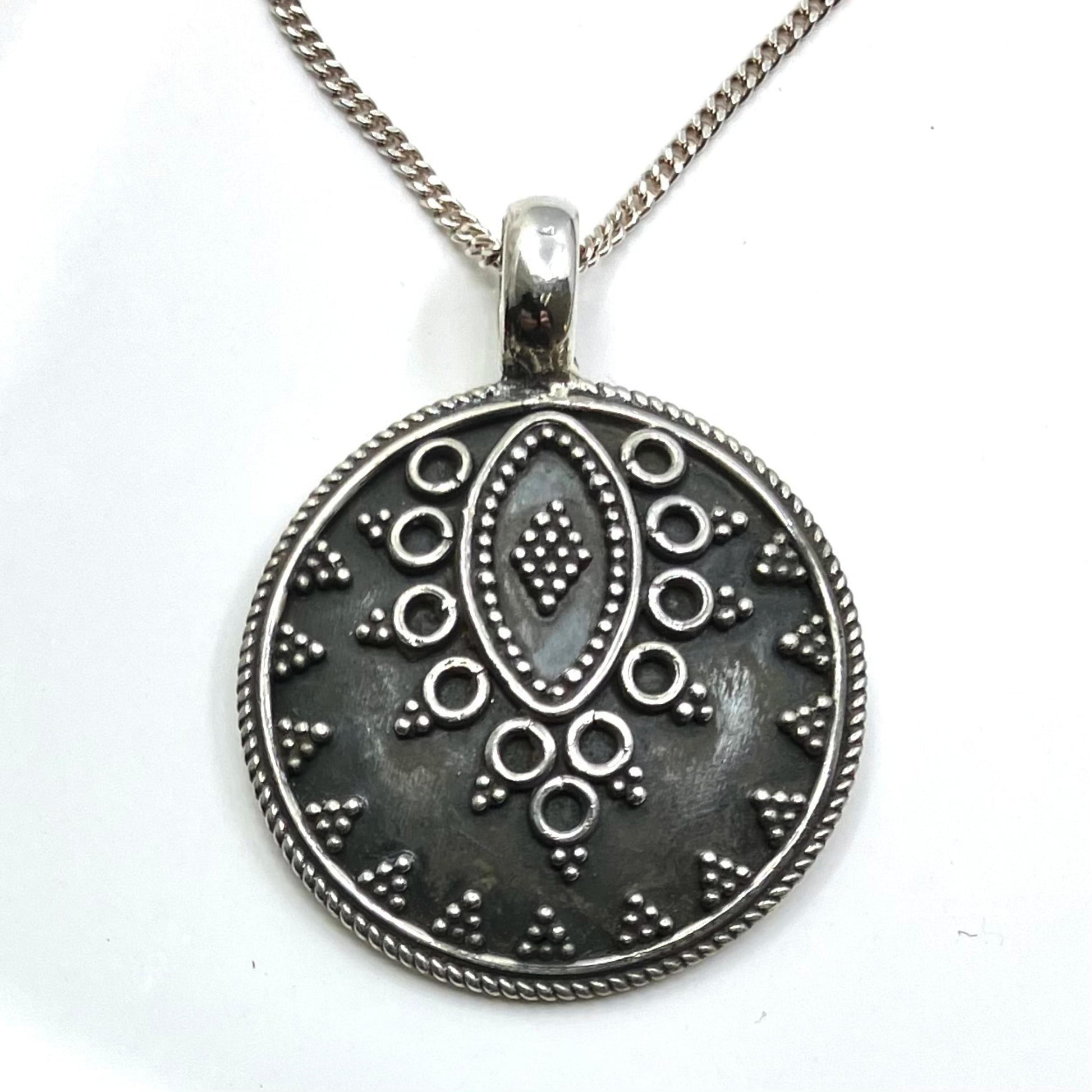 Oxidised Sterling Silver Pendant Round on Silver Chain