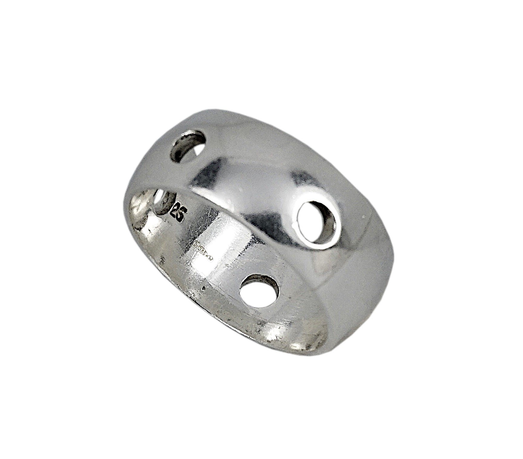 Plain Sterling Silver Chunky Ring with Holes Around the Band