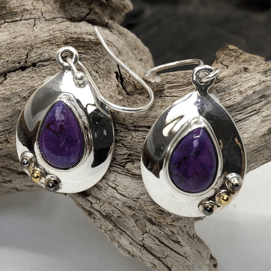 Purple turquoise, sometimes known as Mojave turquoise, is a gorgeous addition to any wardrobe especially because each piece is unique! It is a Copper Rich Semi Precious Stone said to instil inner calm.