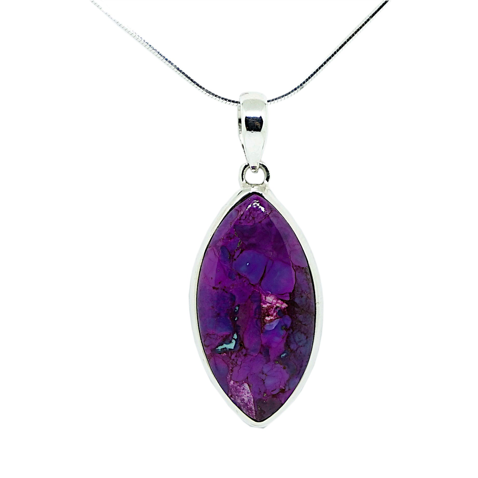 Purple Turquoise Sterling Silver Eye Shaped Pendant and Chain