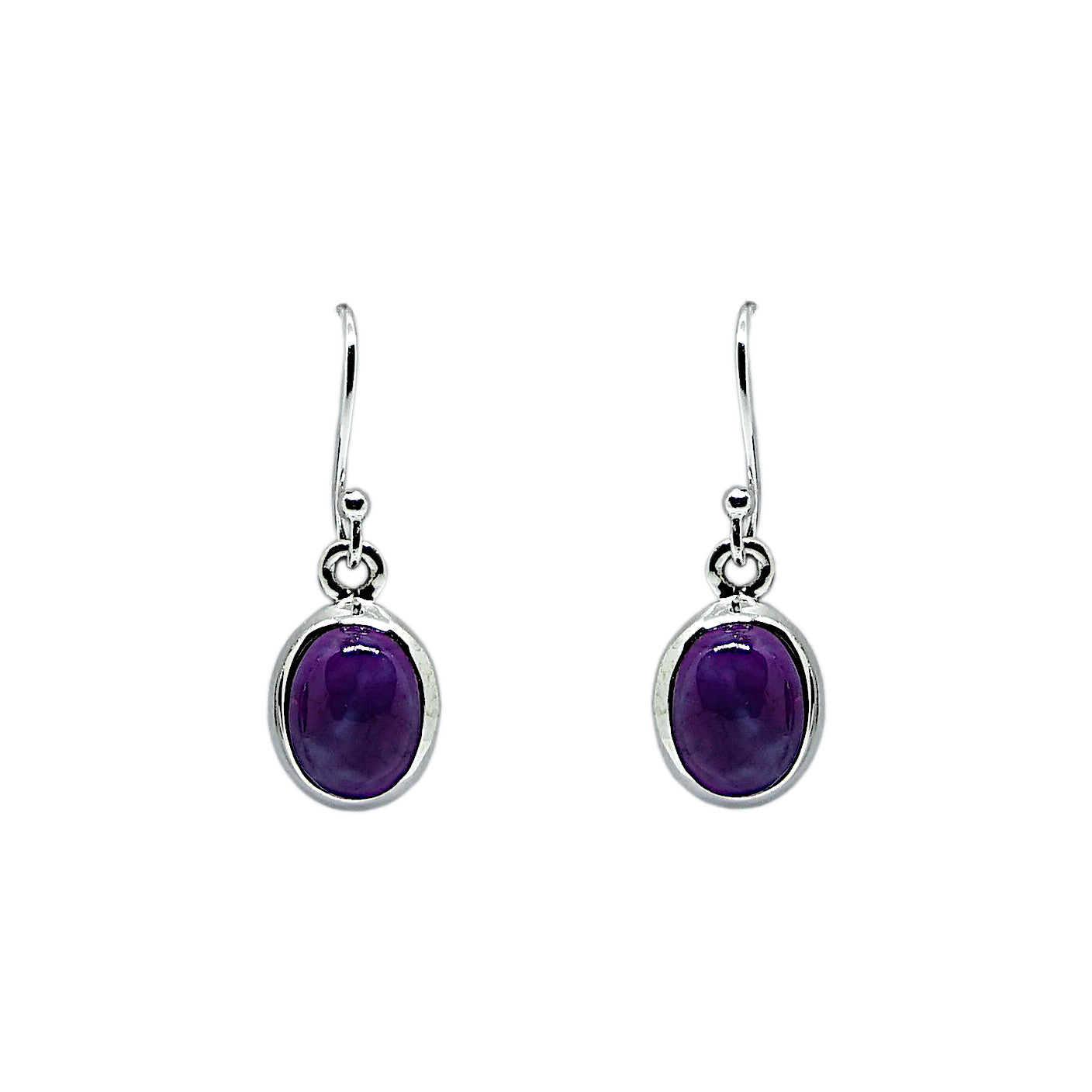 Irish Hallmarked Sterling Silver small oval Purple Turquoise Earrings.