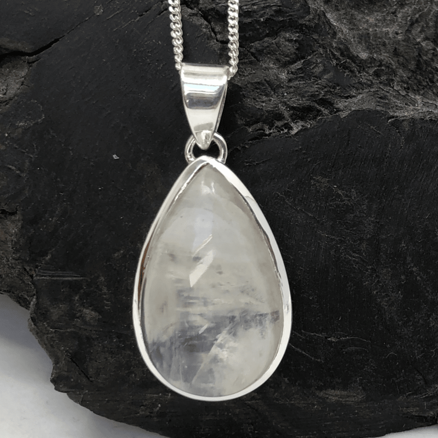 Rainbow Moonstone and Sterling Silver Teardrop Pendant and Silver Chain
