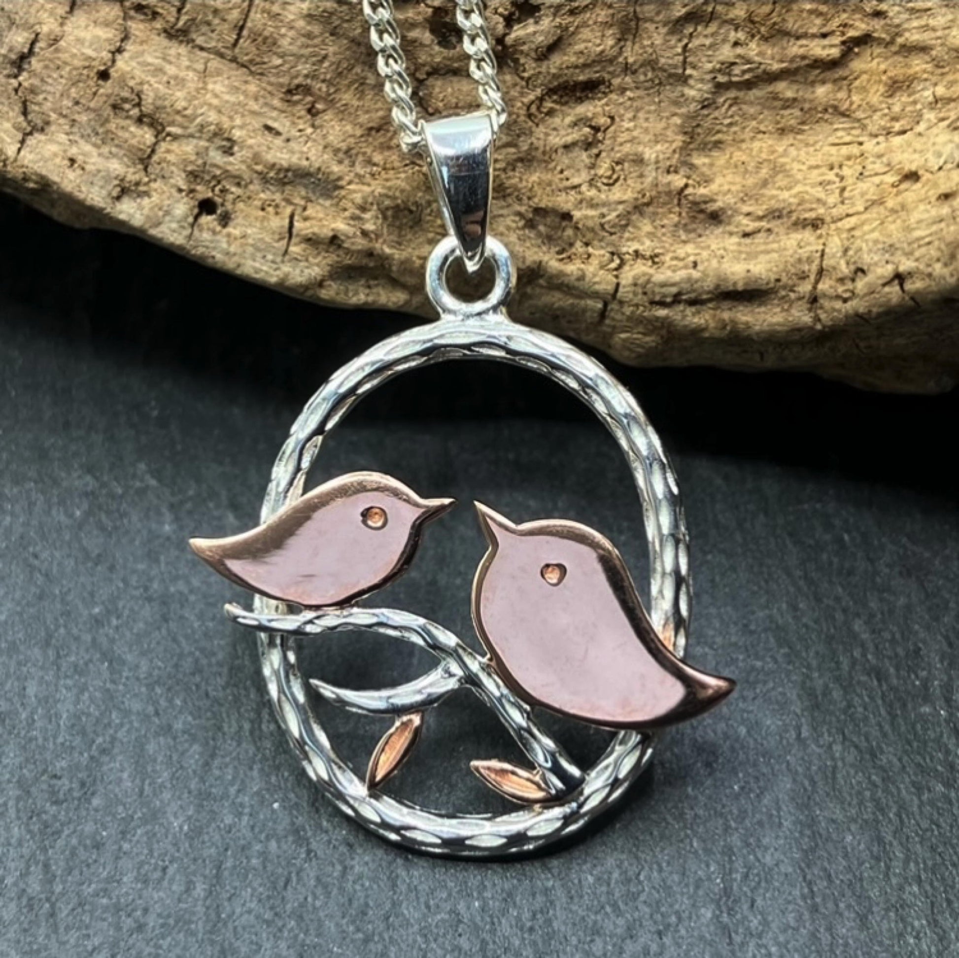 Irish Hallmarked Sterling Silver with Rose Gold Plate birds pendant. Beautiful!