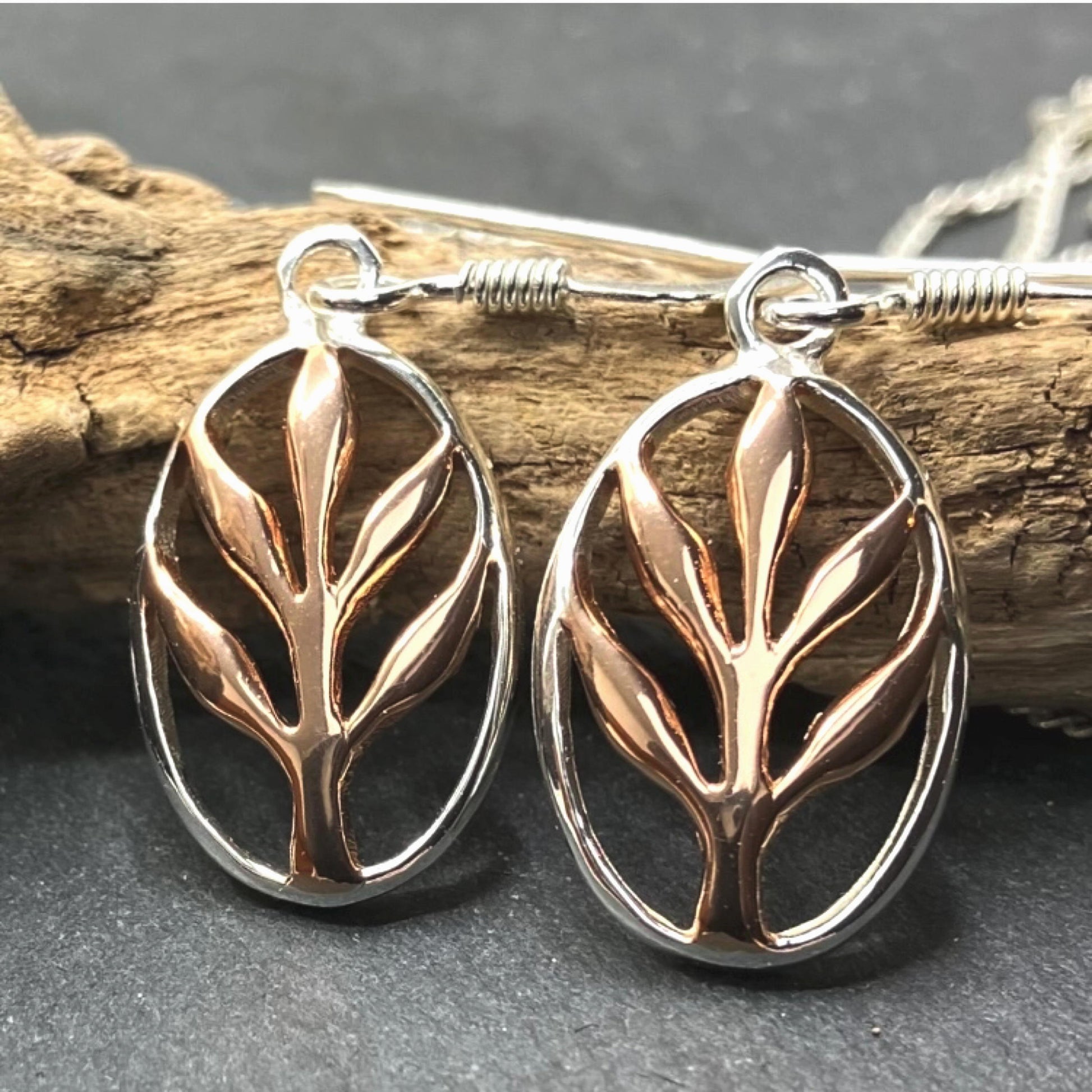 Irish Hallmarked Tree of Life Earrings in Sterling Silver with a Rose Gold Plate. Simple, organic and beautiful!
