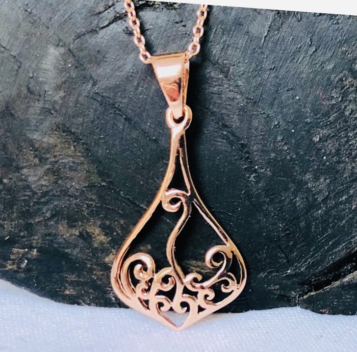 Rose Gold Plated Sterling Silver Pendant on a Rose Gold Plated 16" Chain.