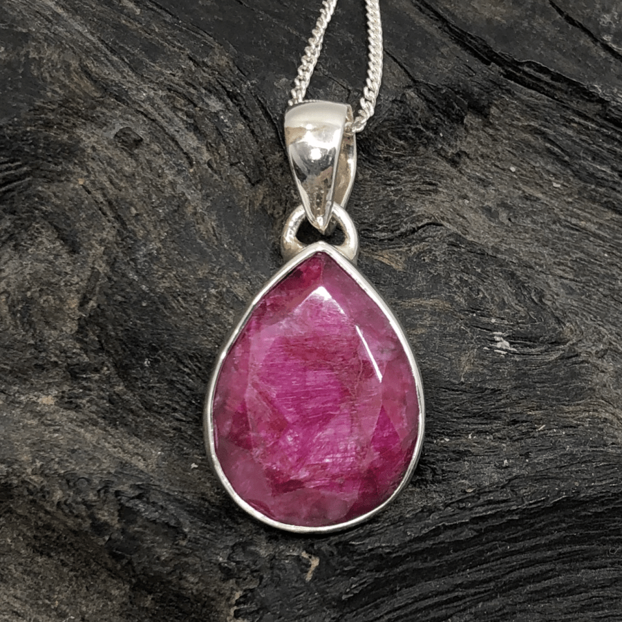 Ruby and Sterling Silver Pear Pendant and Silver Chain