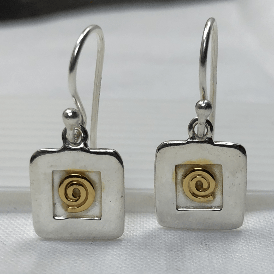 Sterling Silver and Gold Plated Spiral Earrings Square