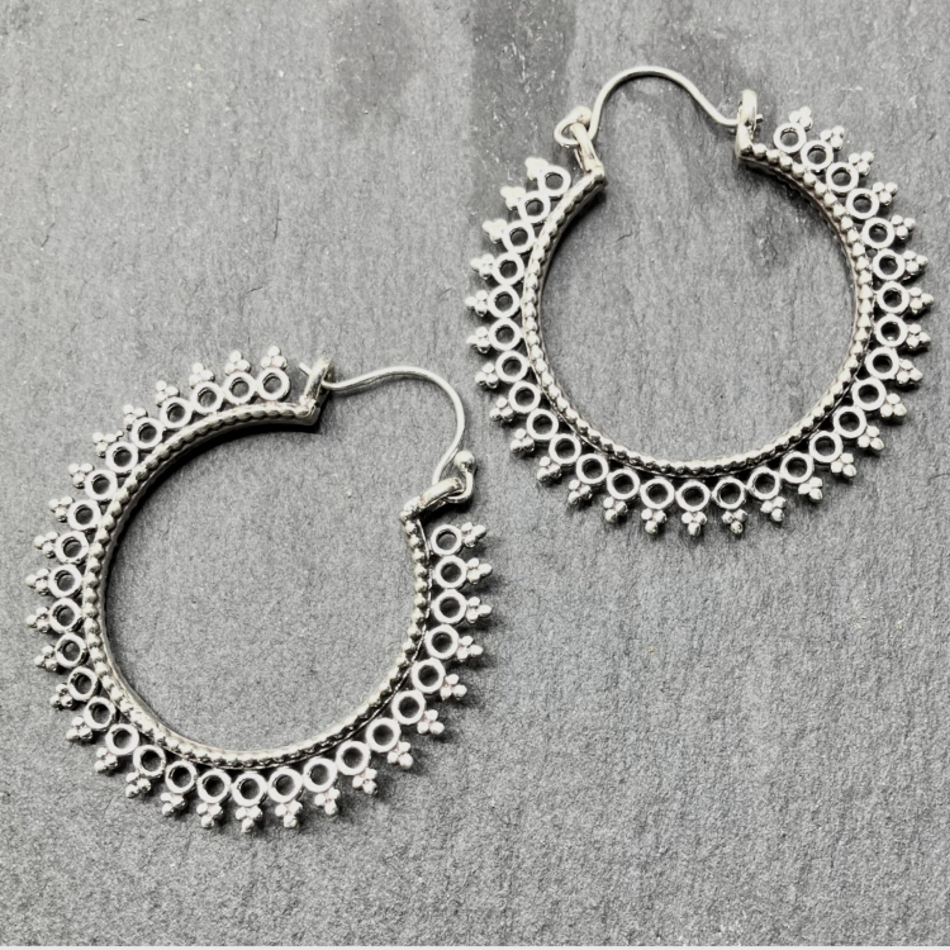 Irish Hallmarked Sterling Silver Hoops with a circle and ball motif.