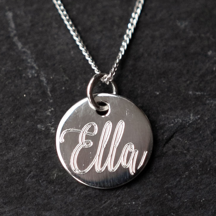 Sterling Silver Engravable Pendant Round on Silver Chain