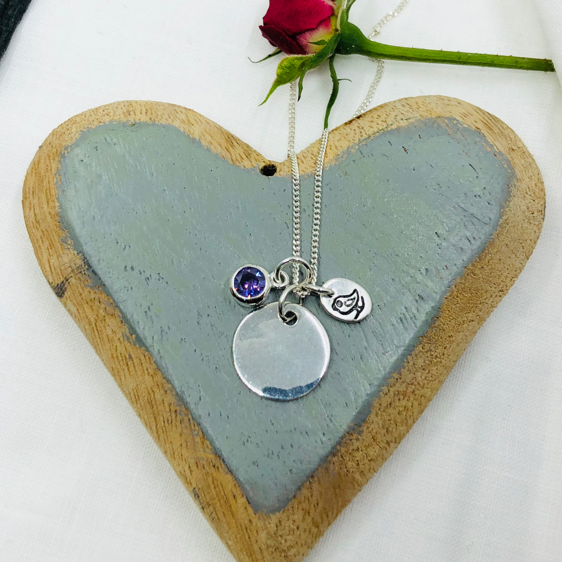 This round disc is lovely worn alone but the addition of a charm or 2 makes it all the more special and personalised ❤️