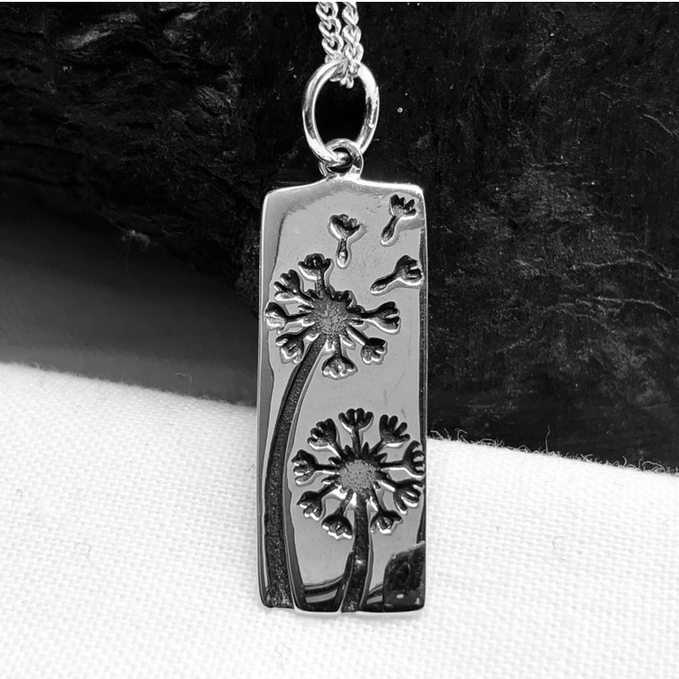 Double your dreams with these 2 beautiful dandelions on a long Sterling Silver Pendant.