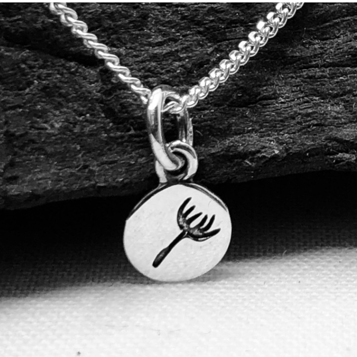 Baby dandelion round disc pendant in Sterling Silver on a 16" curb chain.