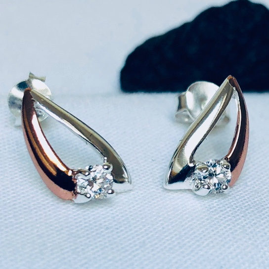 Sterling Silver with a Rose Gold Plate and White CZ Stone Studs.