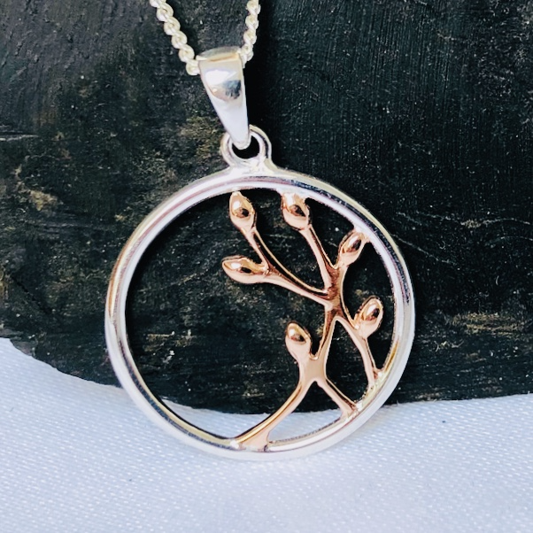 Sterling Silver with Rose Gold Plated Leaf Pendant and Chain
