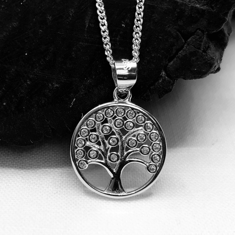Hallmarked Sterling Silver Tree of Life Pendant beautifully set with 25 sparkling CZ stones!