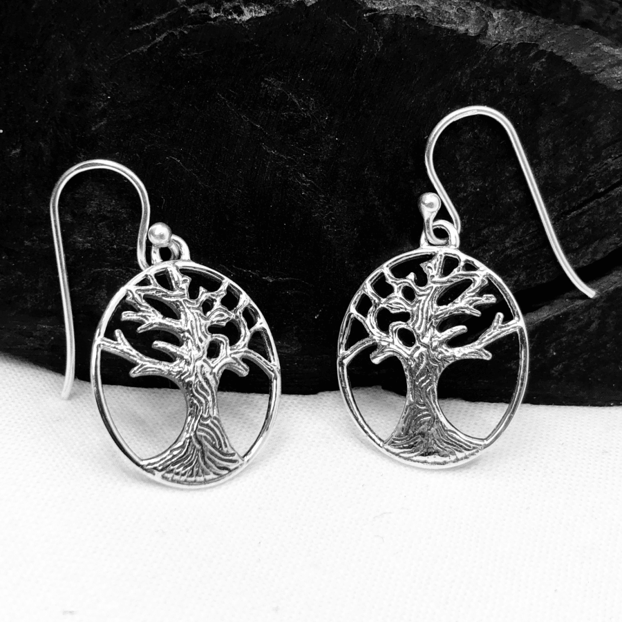 Oval shaped Sterling Silver Tree of Life Earrings.