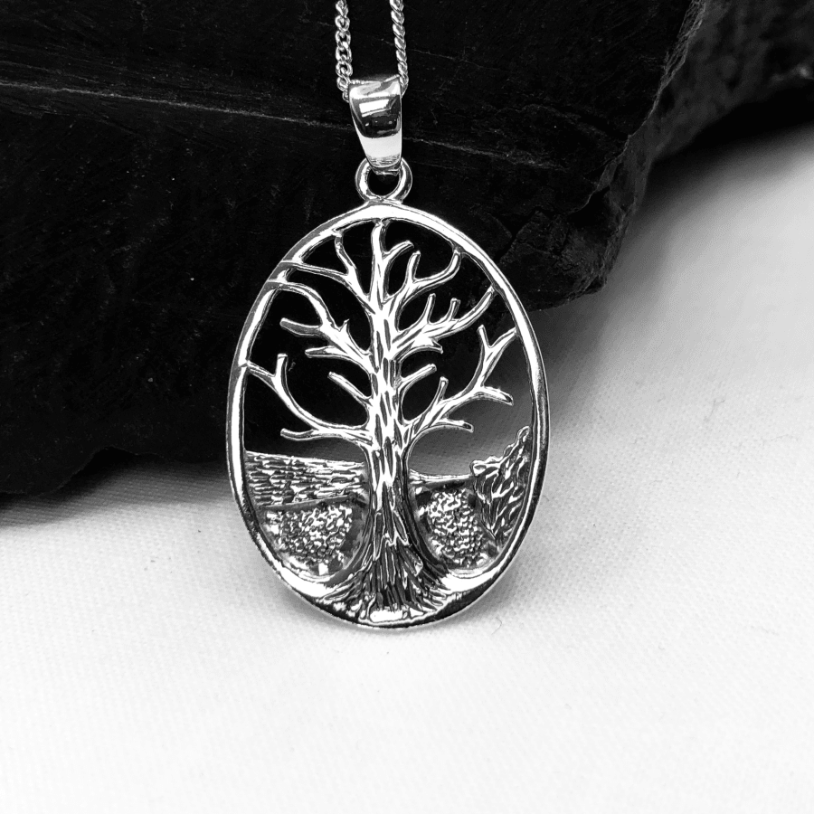 Tree Of Life Oval Silver Pendant and Silver Chain