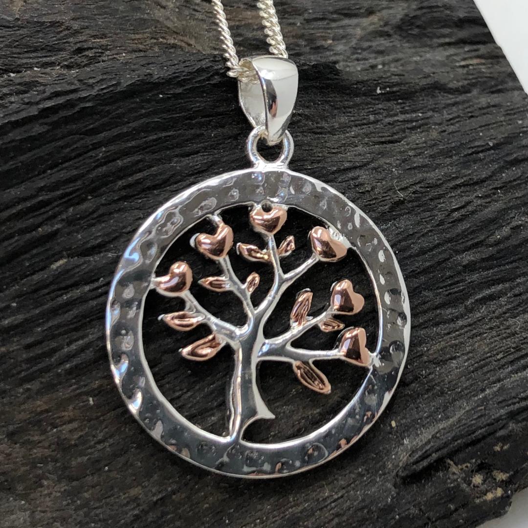 Tree of life Rose Gold Plated Silver Pendant and Chain