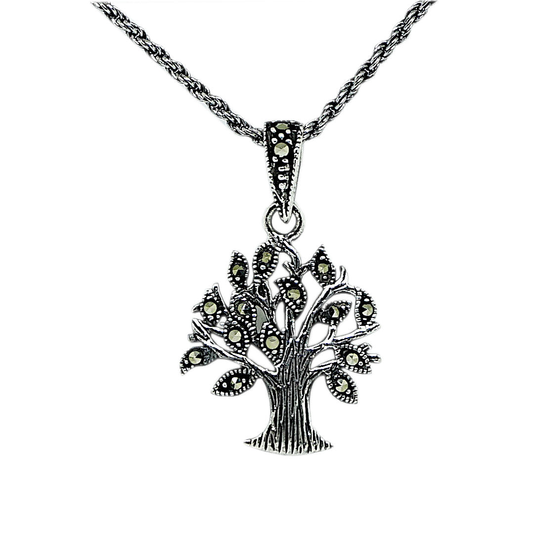 Tree of Life Sterling Silver and Marcasite Pendant and Chain