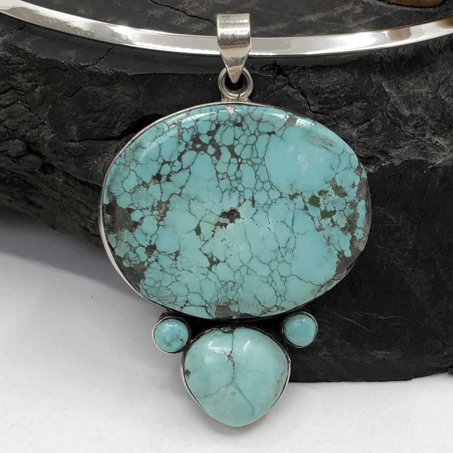 Turquoise 4 Stone Sterling Silver Pendant and Silver Torc