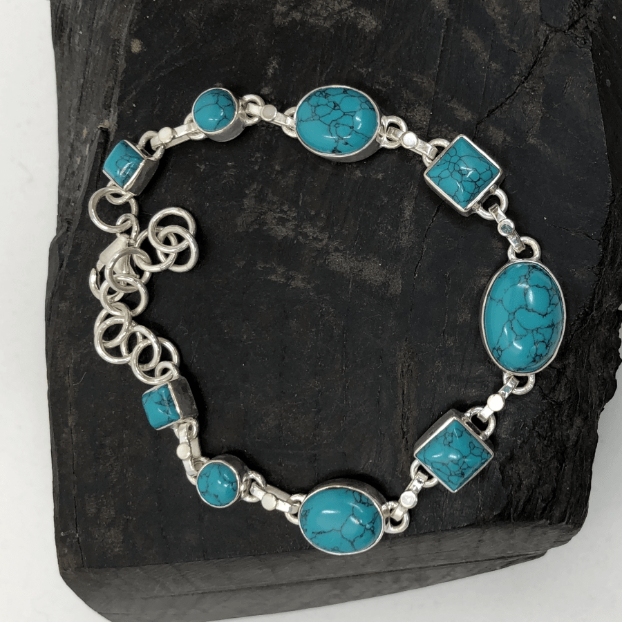 Sterling Silver bracelet set with 9 Turquoise Semi Precious Stones.