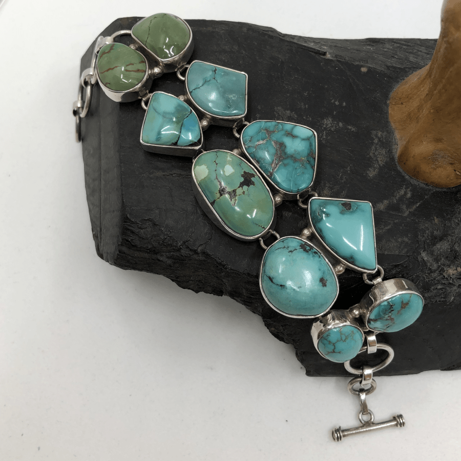 Substantial and Statement this One Off Silver Bracelet is set with 10 beautiful Turquoises.