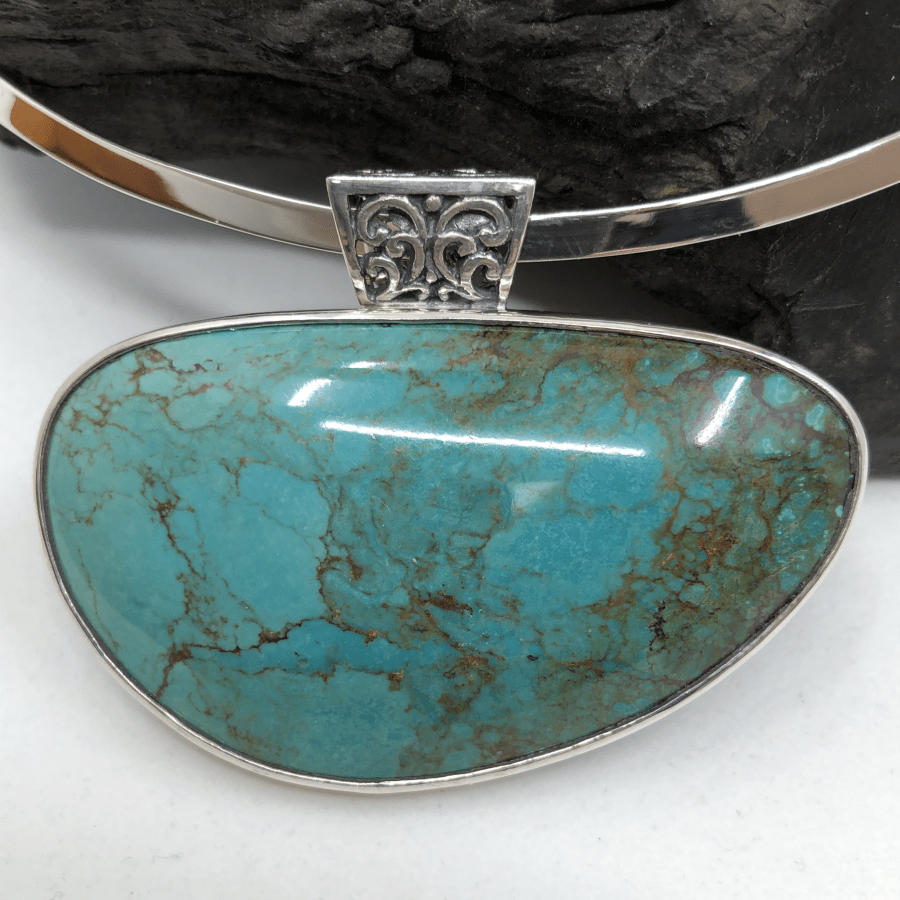 Stunning Turquoise Stone in Silver Setting with beautifully detailed Bail.