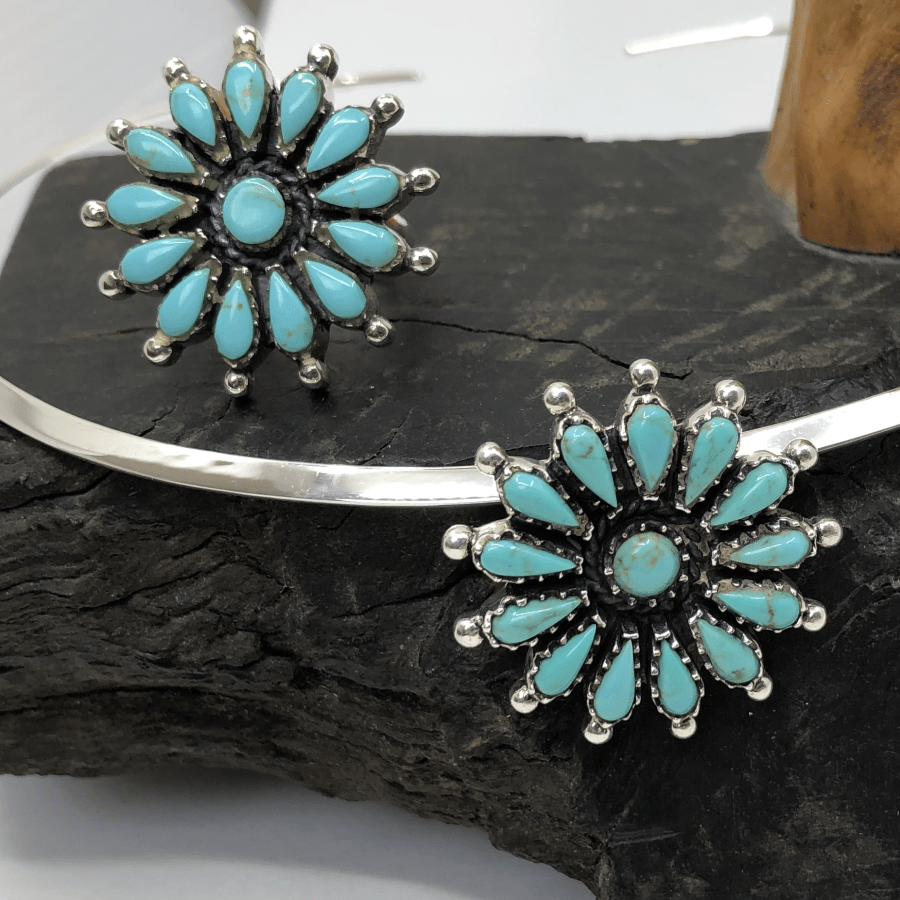 Turquoise Sun Sterling Silver Pendant and Silver Torc