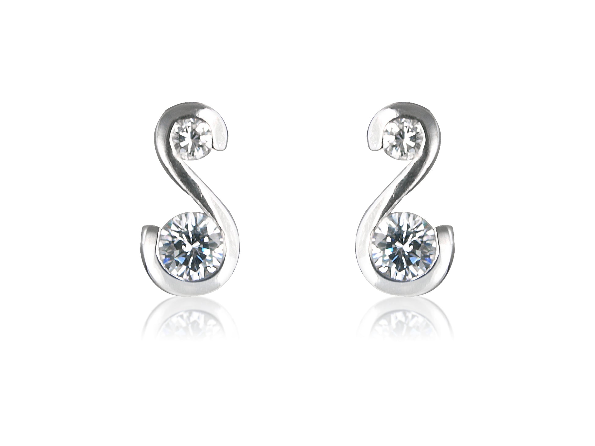 Irish Hallmarked Sterling Silver, 2 Stoned Cubic Zirconia, S shaped studs.