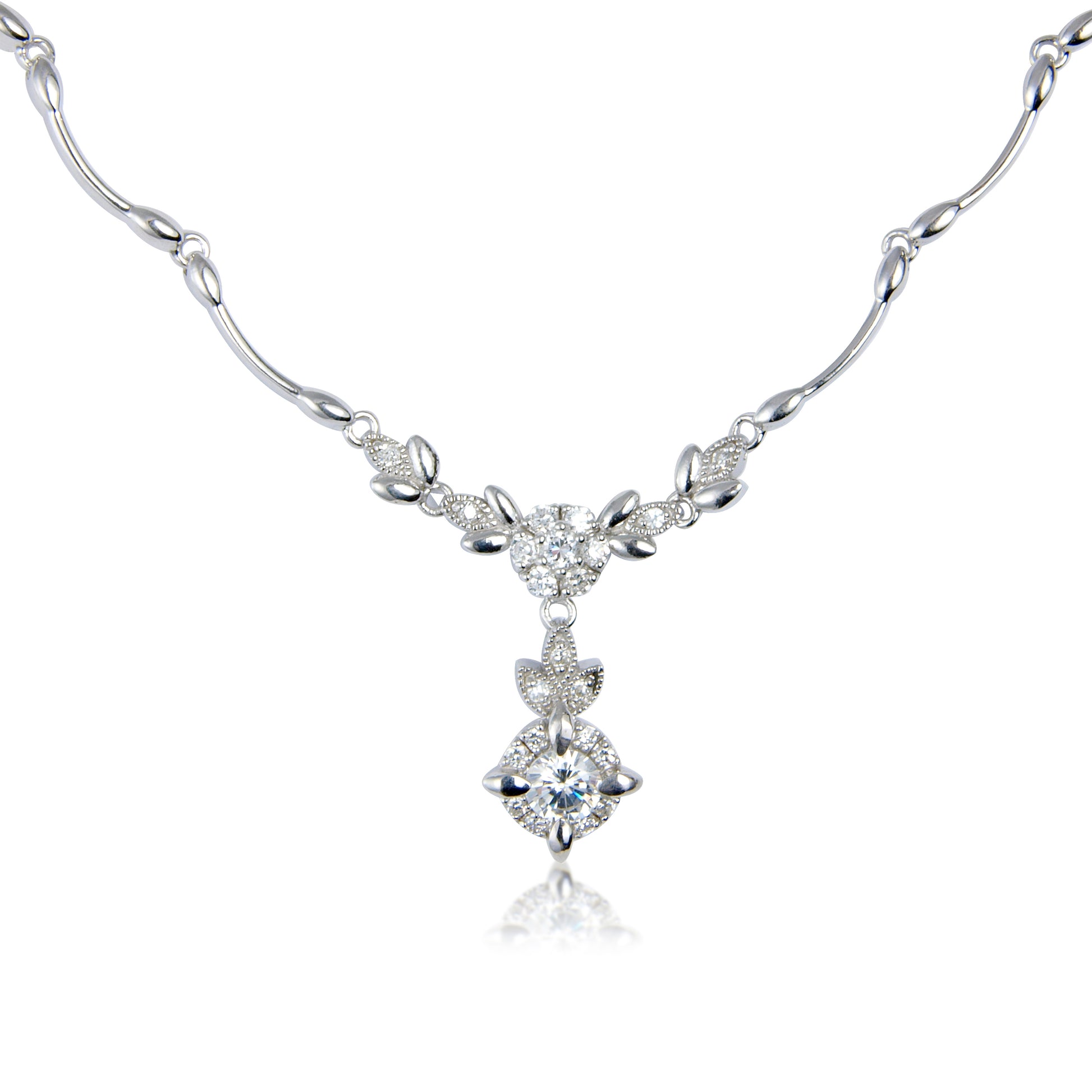 White Cubic Zirconia and Sterling Silver Flower Necklace
