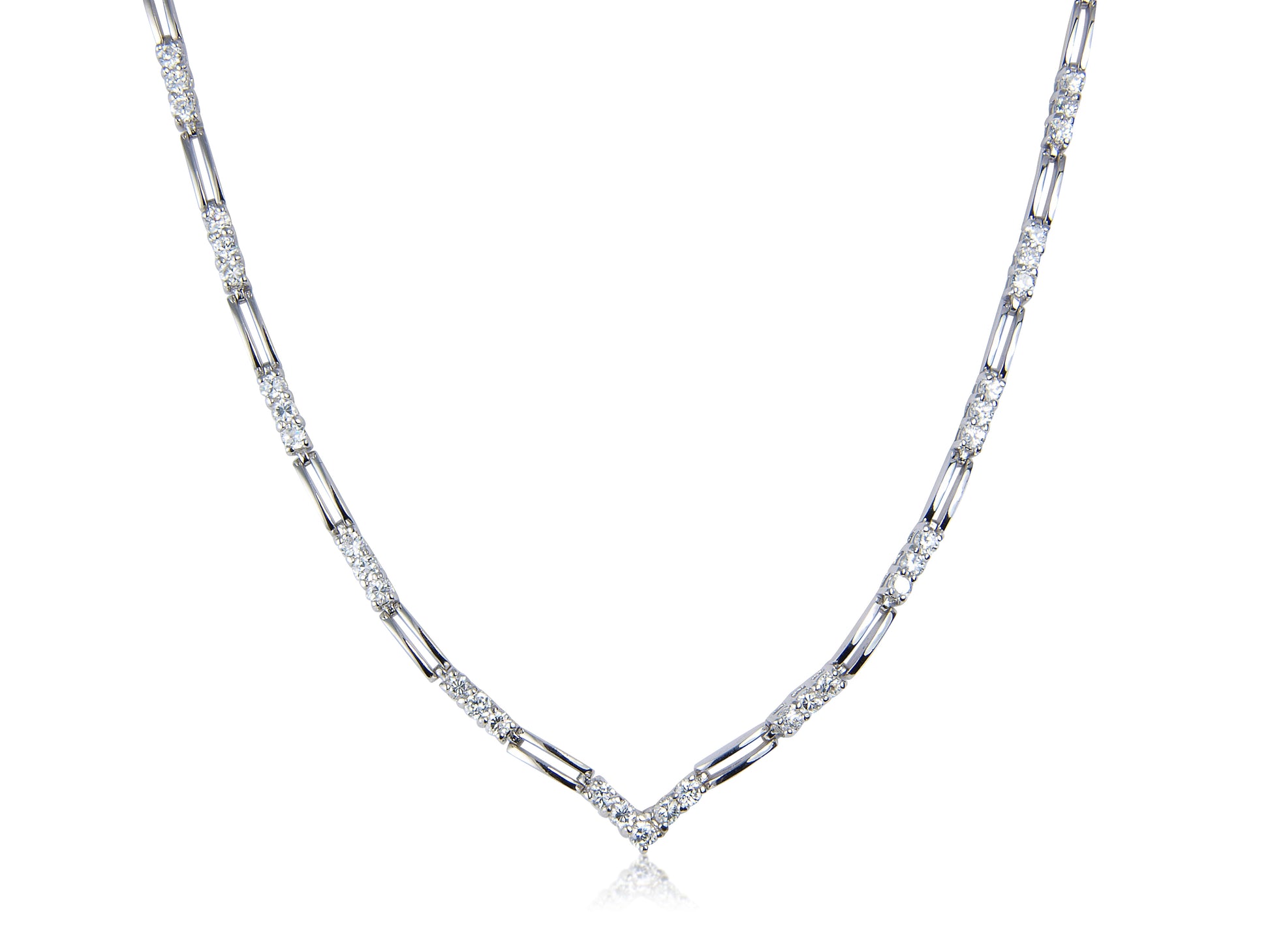 White Cubic Zirconia and Sterling Silver V Shape Necklace