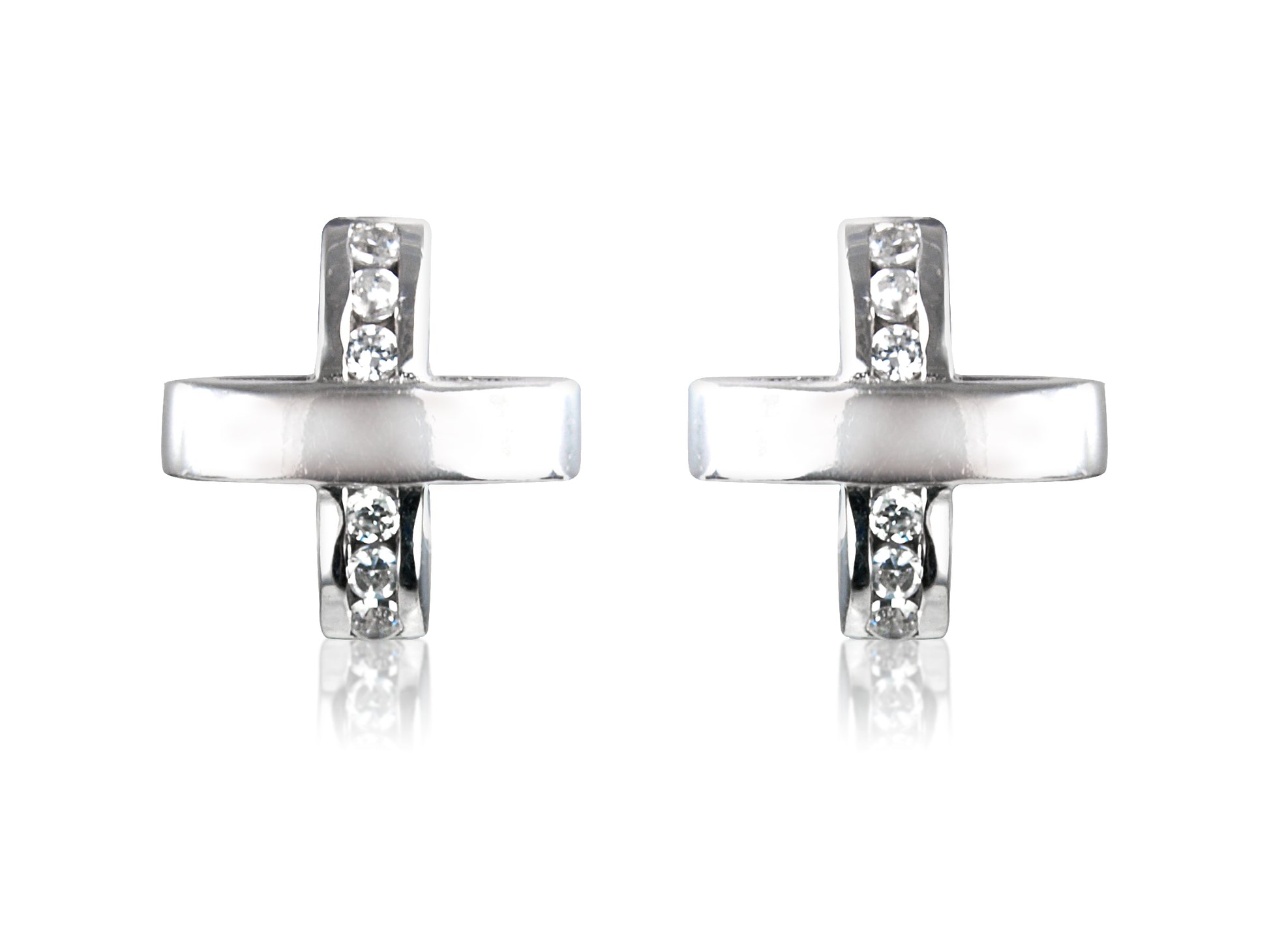 White Cubic Zirconia Cross Sterling Silver Studs
