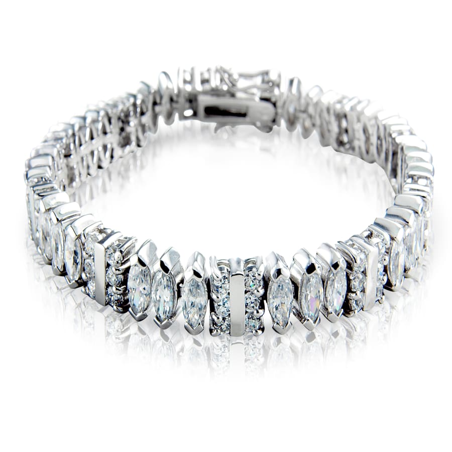 White Cubic Zirconia Eye Shaped Sterling Silver Bracelet