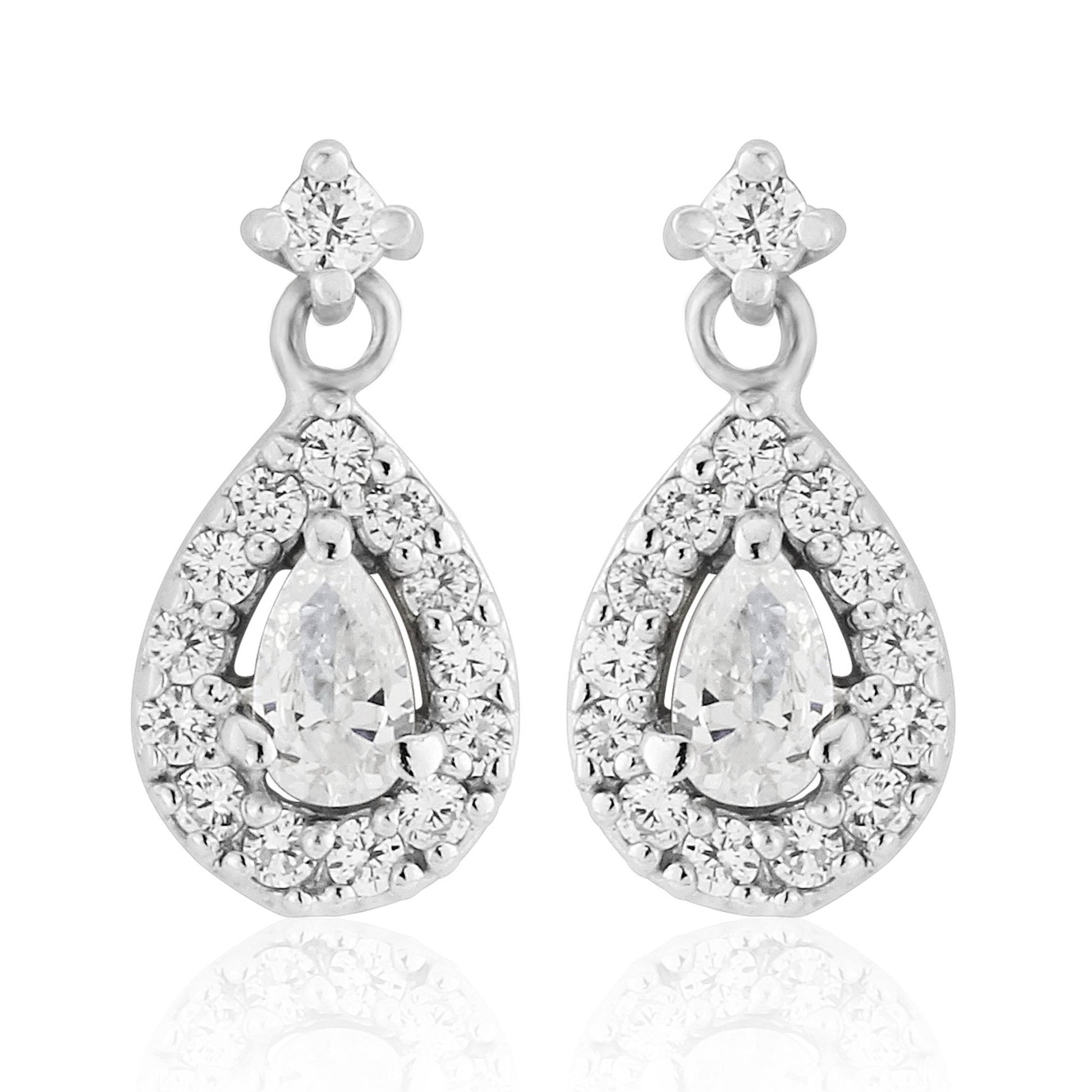 White CZ and Sterling Silver Teardrop Shaped Earrings