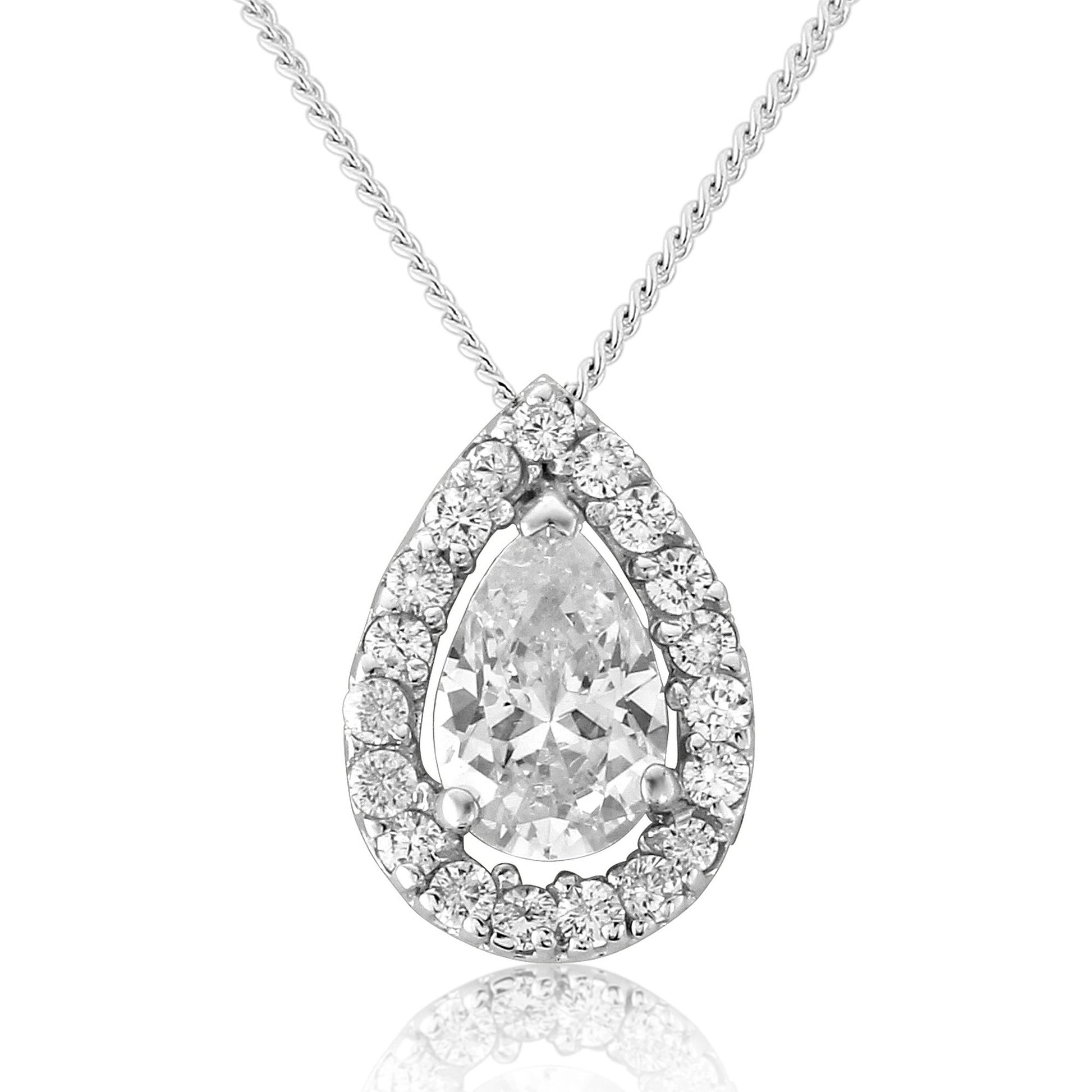White CZ and Sterling Silver Teardrop Shaped Pendant and Silver Chain
